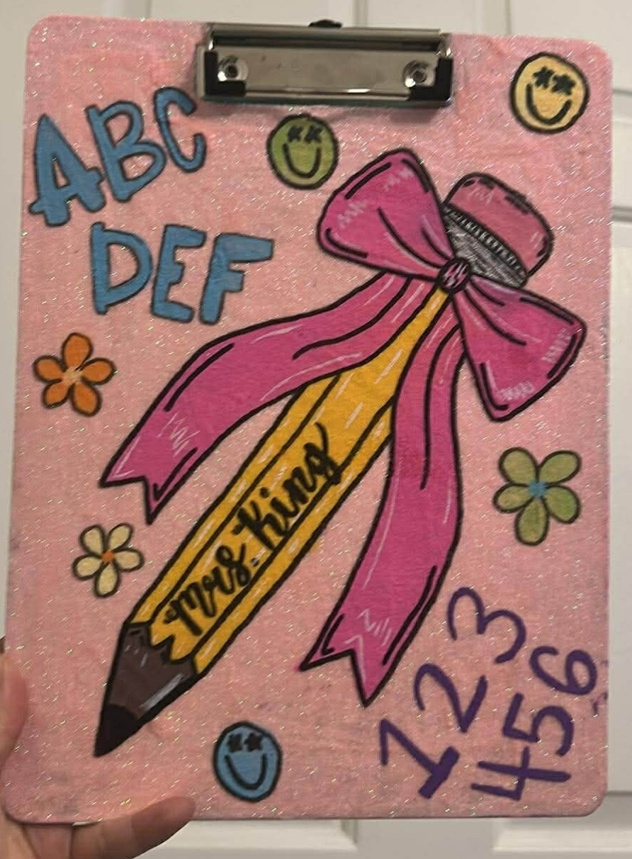 This bundle includes a personalized clipboard paired with a custom rhinestone pen, handcrafted to complement each other perfectly. Whether you’re gifting a teacher, celebrating a milestone, or elevating your own workspace, this set adds a touch of elegance and intention to every detail.